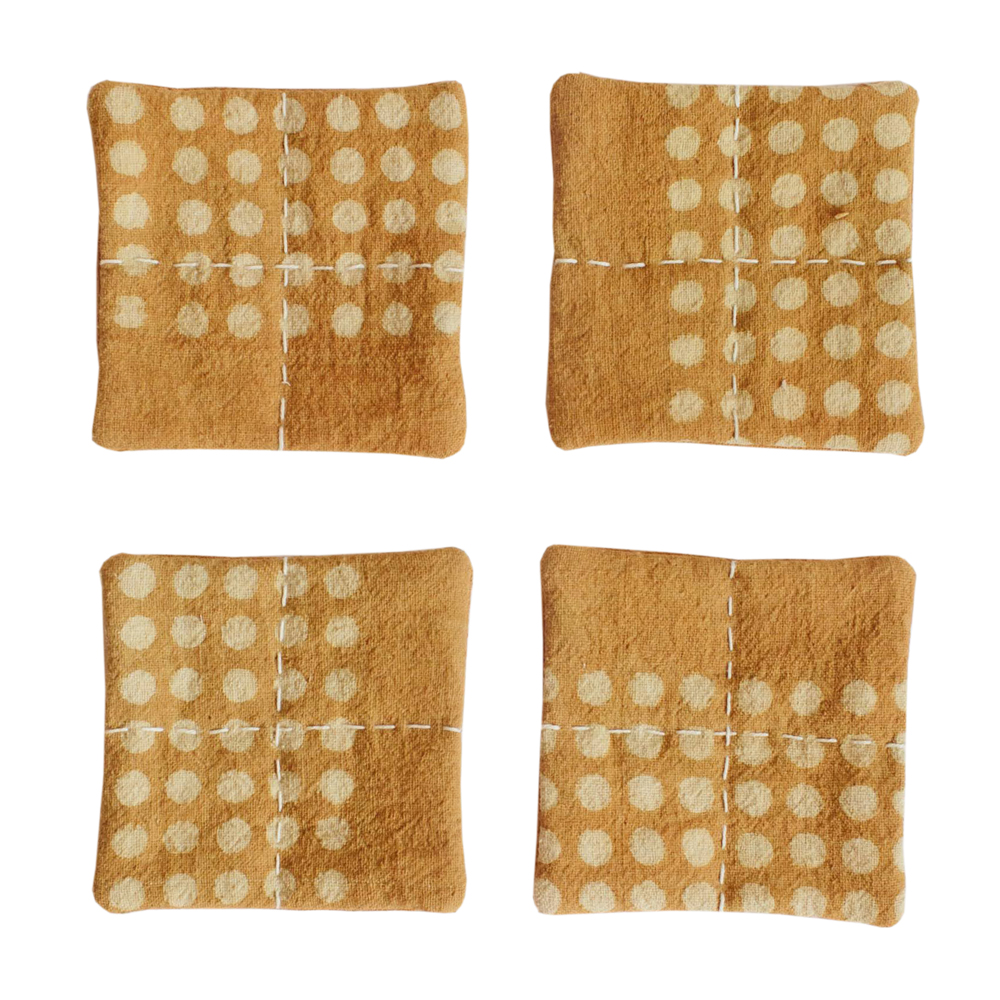 Enhance your table settings with our lightweight, washable coasters, perfect for dinner, coffee, or bedside tables. Crafted by skilled artisans in Pakistan, these coasters bring an understated touch of luxury to any surface. Their versatile design pairs beautifully with our multi-striped or circle Table Runners and Dinner Napkins, or the Indigo Table Mats collection. Ideal for elevating everyday moments, these eco-friendly coasters are both practical and stylish, adding a handcrafted, global flair to your home